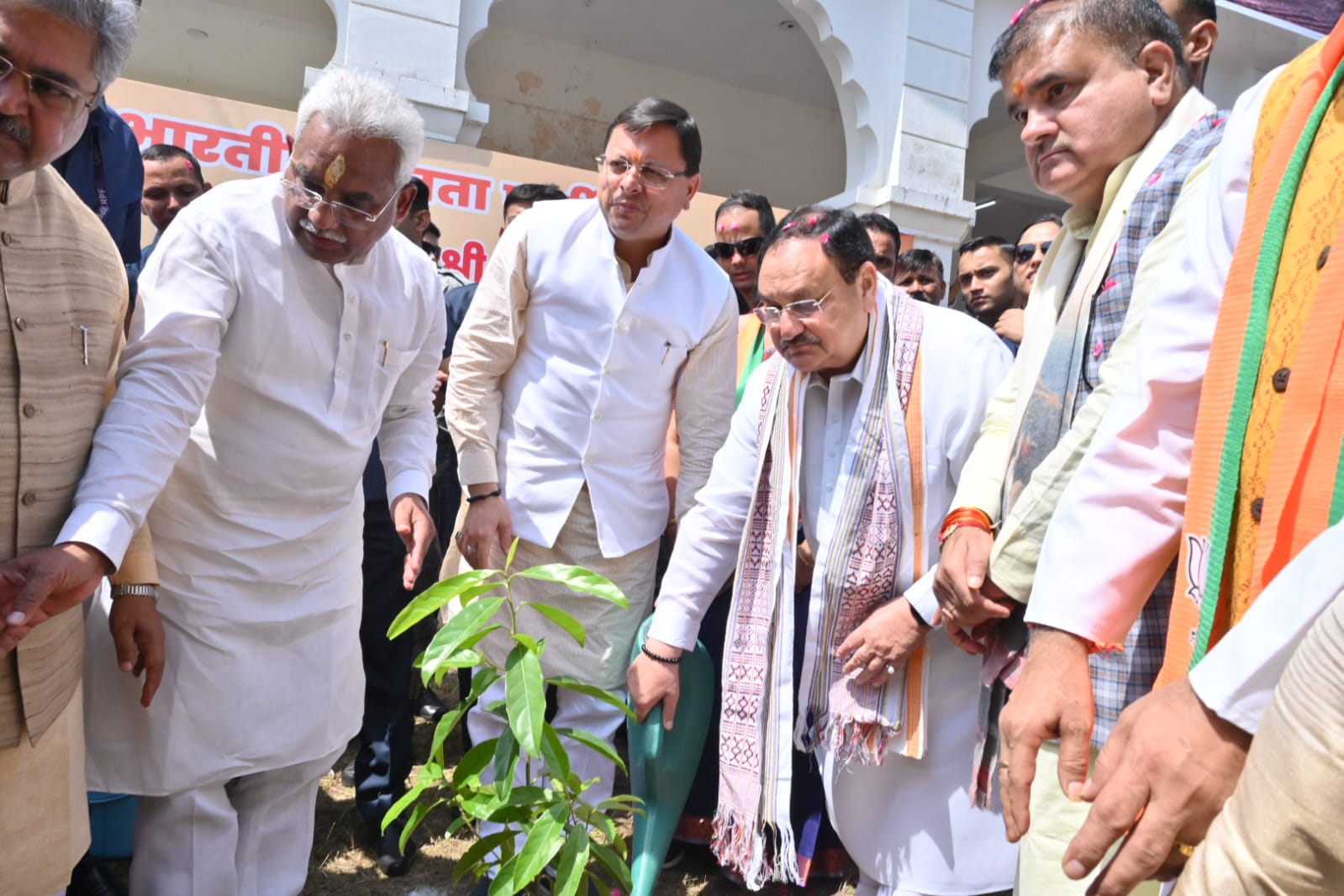 मुख्यमंत्री श्री पुष्कर सिंह धामी ने भाजपा के राष्ट्रीय अध्यक्ष श्री जे.पी नड्डा के साथ रविवार को ऋषिकुल आयुर्वेद कॉलेज परिसर, हरिद्वार में ‘मेरी माटी मेरा देश’ कार्यक्रम के अंतर्गत पौधरोपण कर पर्यावरण संरक्षण का संदेश दिया। इस अवसर पर उन्होंने देश की आजादी एवं देश की रक्षा के लिए अपना सर्वस्व न्यौछावर करने वाले बलिदानियों का स्मरण किया। भाजपा के राष्ट्रीय अध्यक्ष श्री जेपी नड्डा एवं मुख्यमंत्री श्री पुष्कर सिंह धामी ने पं. श्री मदनमोहन मालवीय जी की प्रतिमा पर पुष्पांजलि अर्पित कर उन्हें श्रद्धांजलि अर्पित की।
